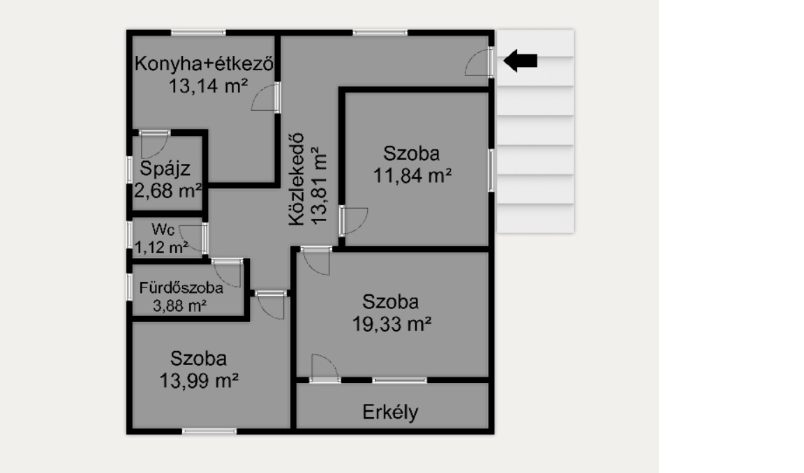 🚪 Közlekedő: 13,81 m²