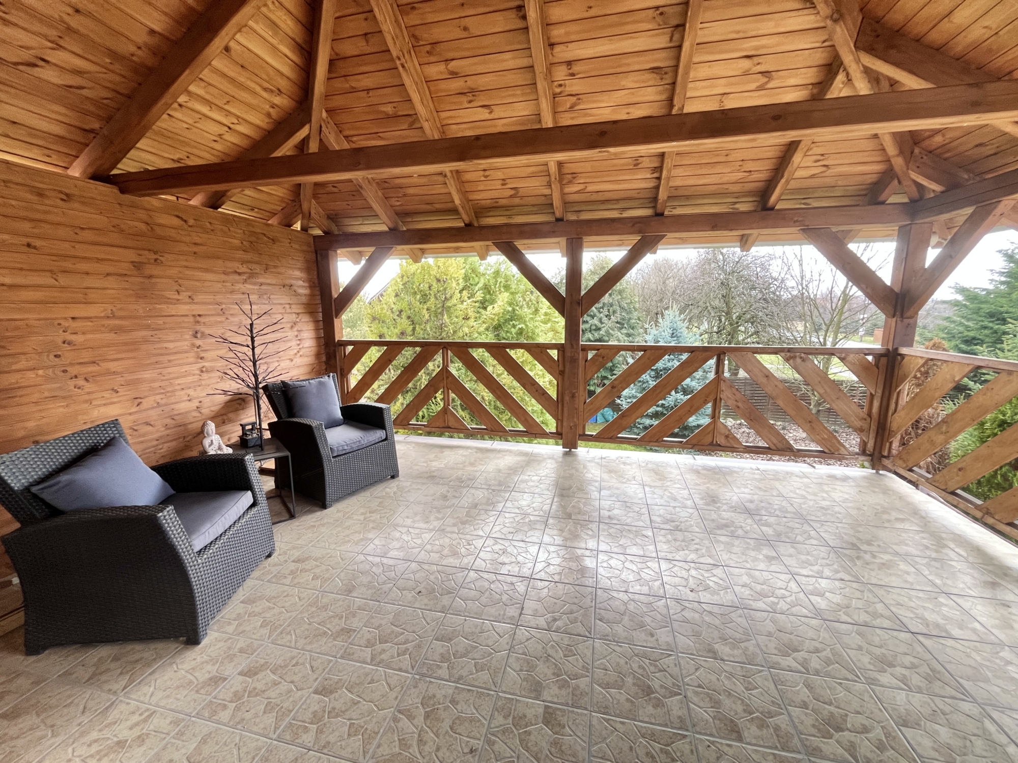 Hangulatos terasz és szalonnasütő rész is helyet kapott.