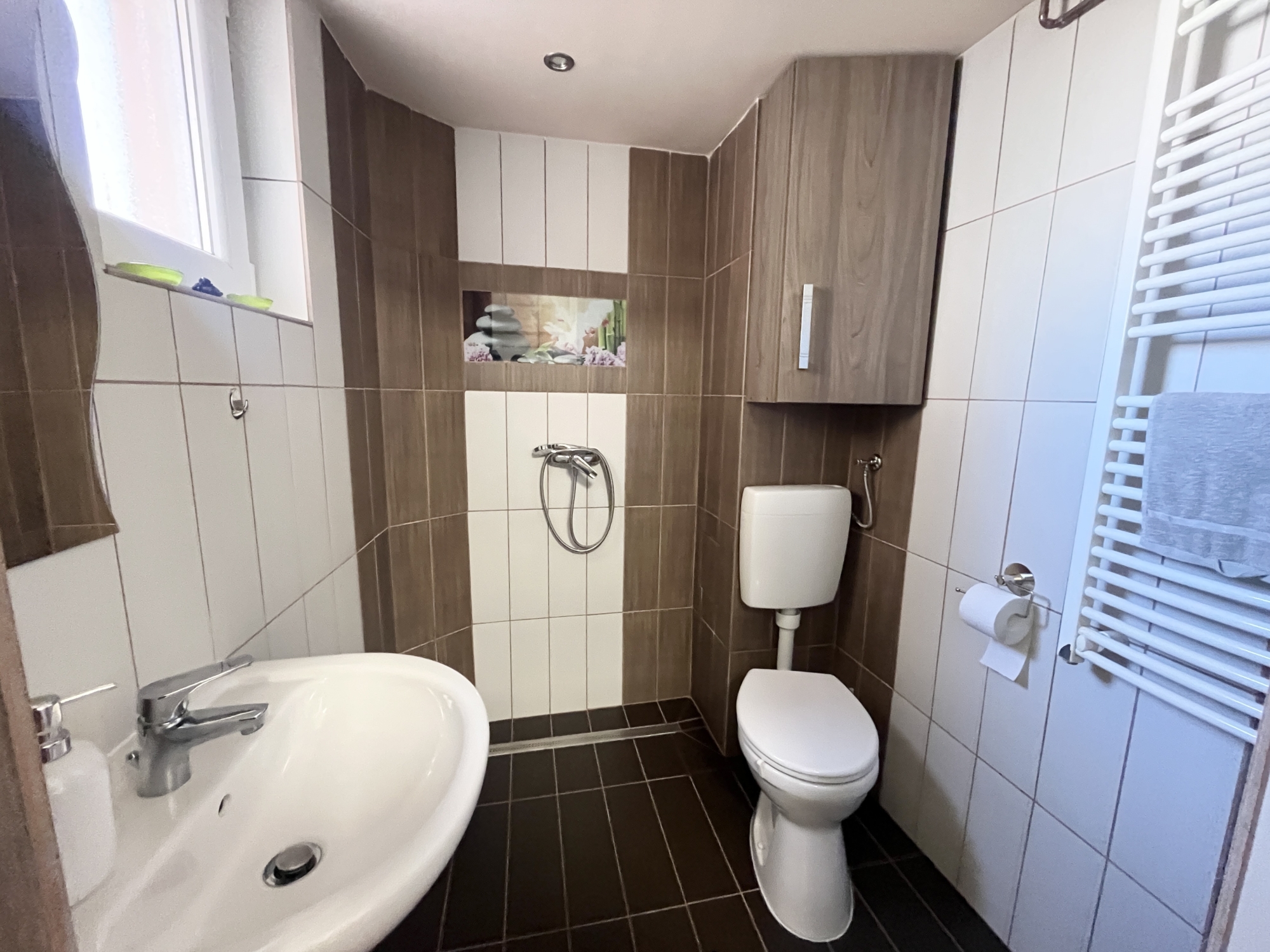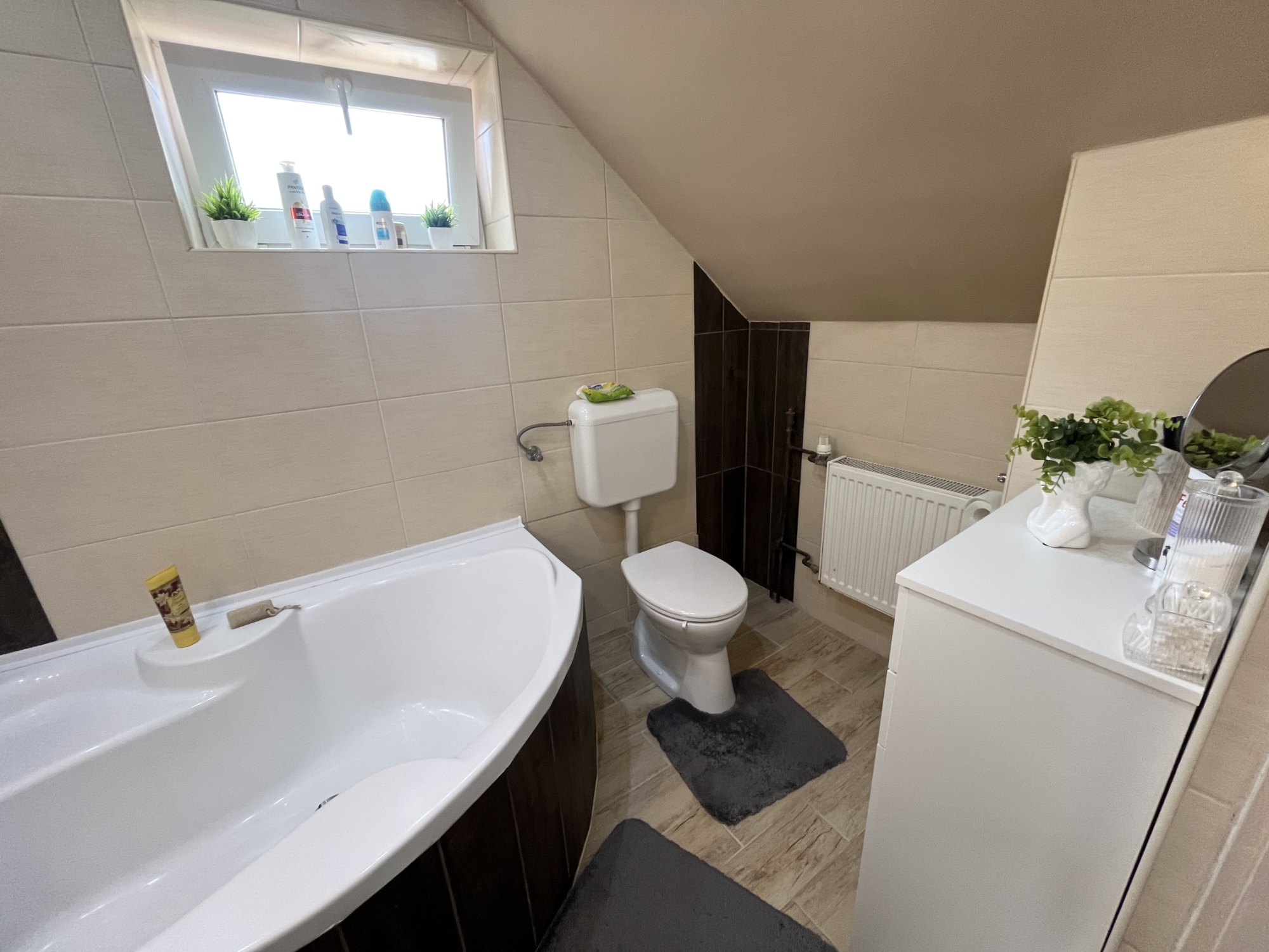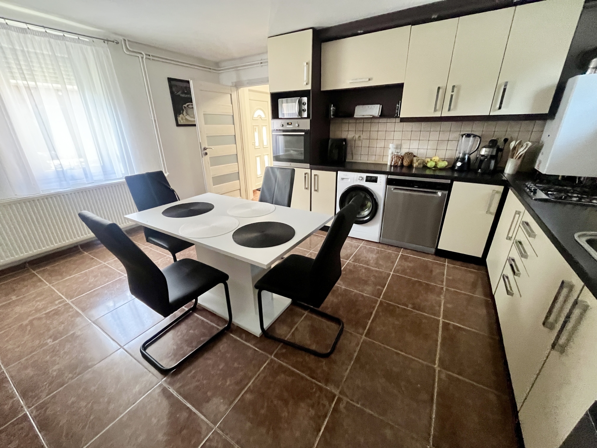 A fűtést és a meleg vizet gázkazán biztosítja. A radiátorok hőfokszabályozóval vannak ellátva.