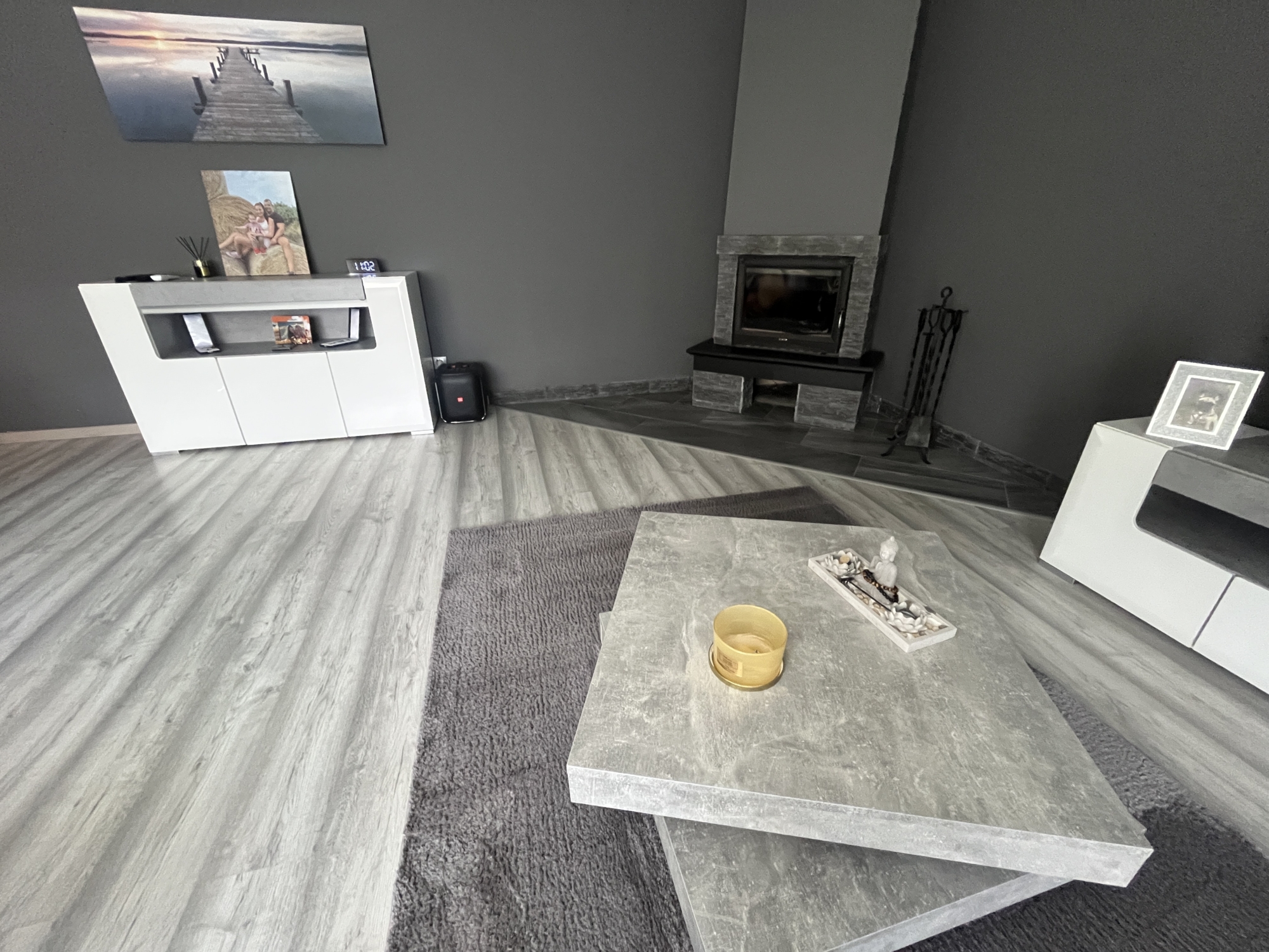 A nappaliban beépített kandalló pedig nem csak meghitt hangulatot, de kellemes meleget is varázsol a hideg téli estéken.