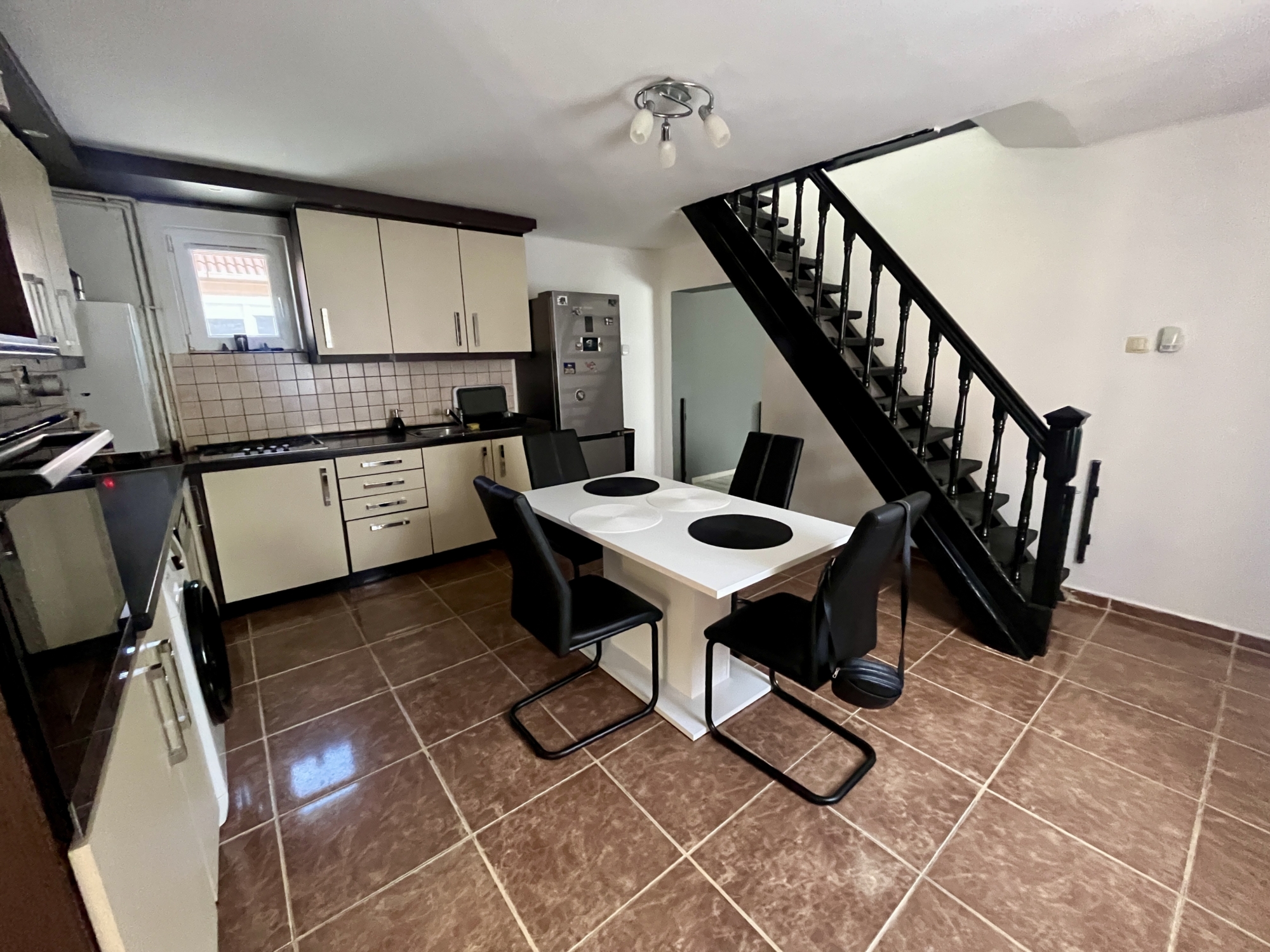 A földszinten található: előszoba, étkezős konyha, tágas nappali, fürdőszoba.
