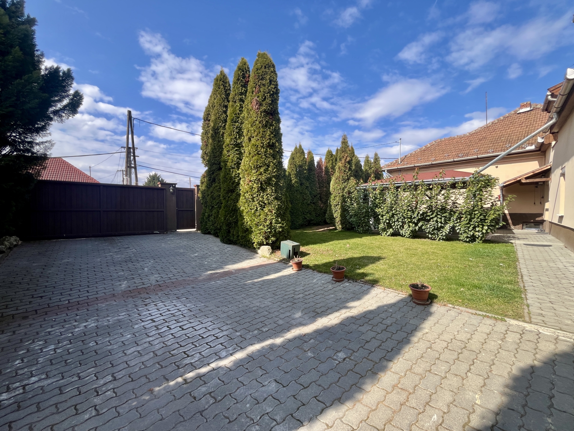 A telek mérete 518 m², mely szépen gondozott, füvesített, részben térkövezett.