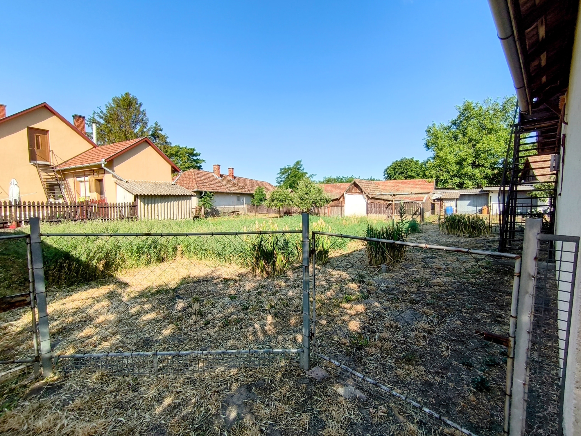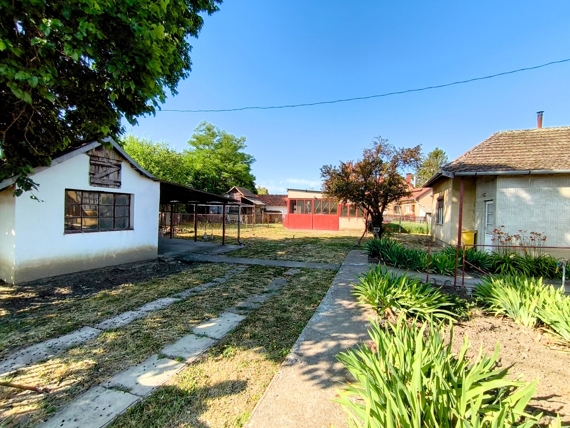 Az udvar, rendezett, körbe kerített. Van hely egy kis veteményesnek, gyümölcs fáknak, vagy egy medencének, hintának, ahol a gyerekek biztonságban játszhatnak. Helyet kapott még egy hatalmas garázs, ami szerelő aknával lett ki alakítva, így akár vállalkozásra is alkalmas lehet, hisz egy autó szerelő műhelynek ideális.