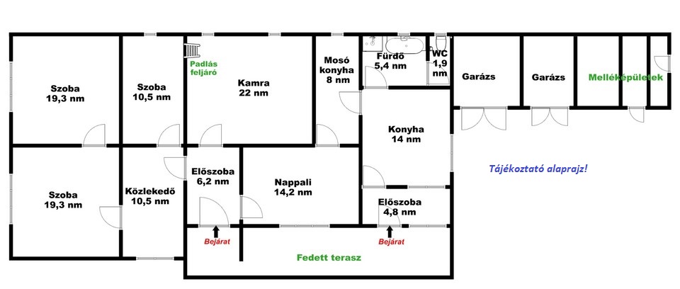 • 2 garázs, valamint állattartásra és tárolásra alkalmas melléképületek