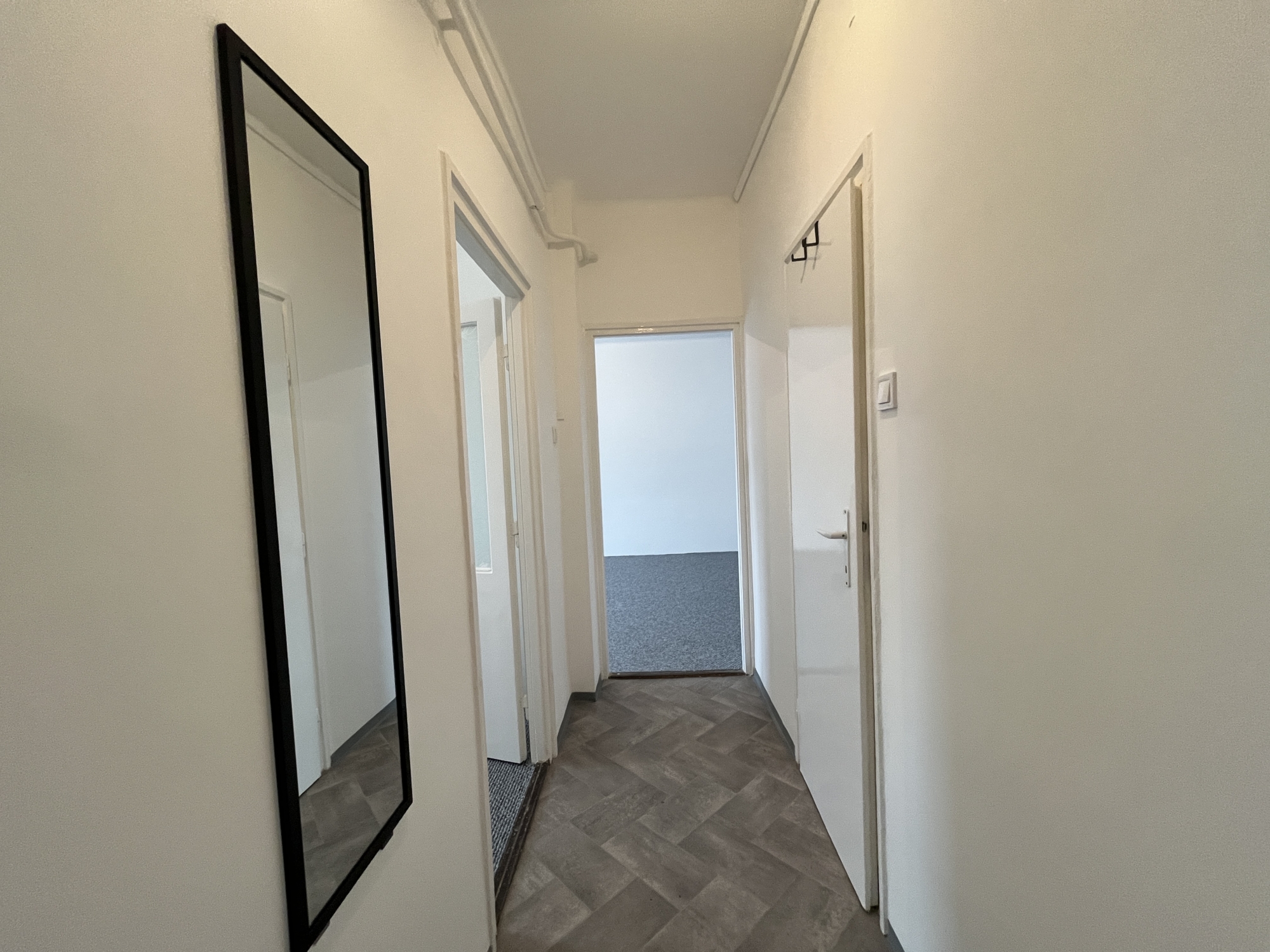 A két szobában padlószőnyeg, a konyhában és előszobában vinyl padló található.