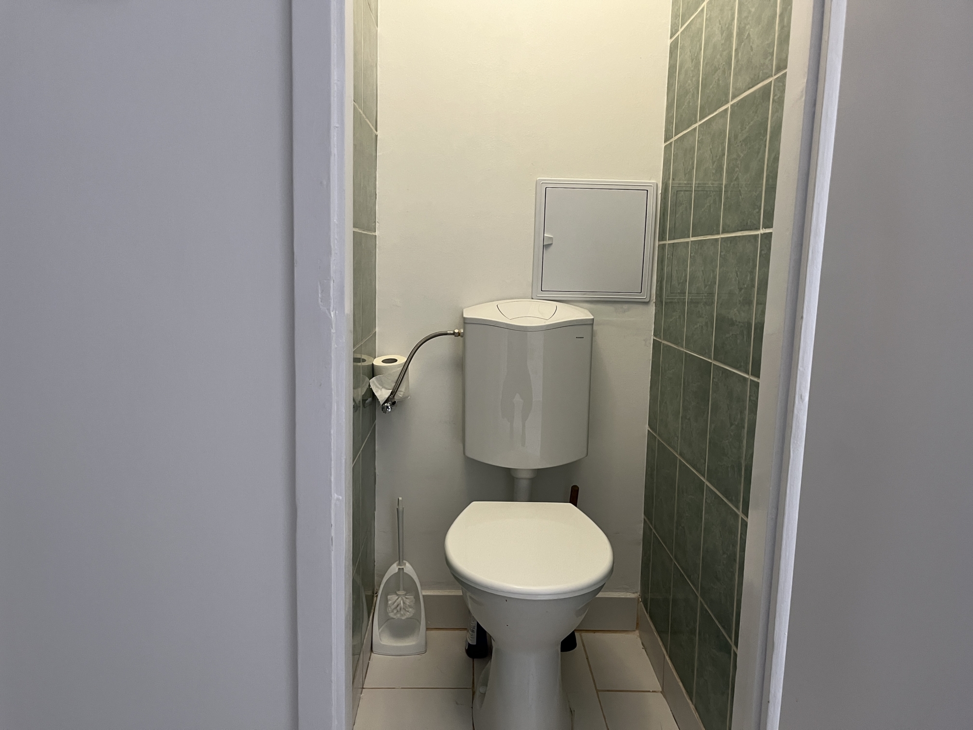 A WC járólappal és csempével burkolt, mely külön helyiségben van.