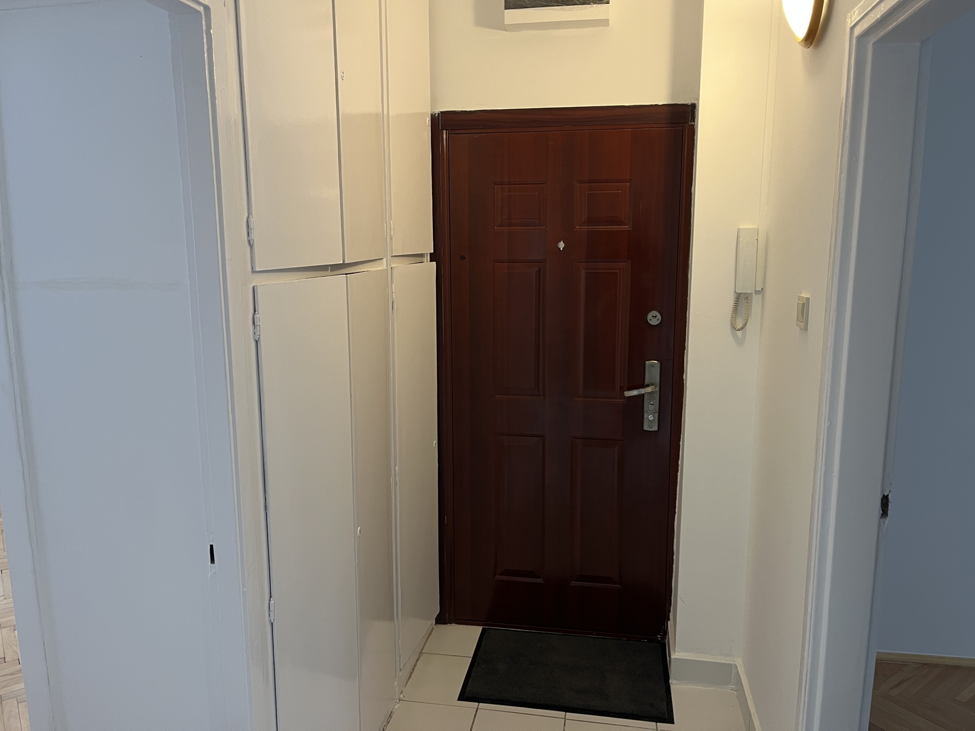 A lakásban műanyag nyílászárók és egy új, több ponton záródó bejárati ajtó lett beépítve.