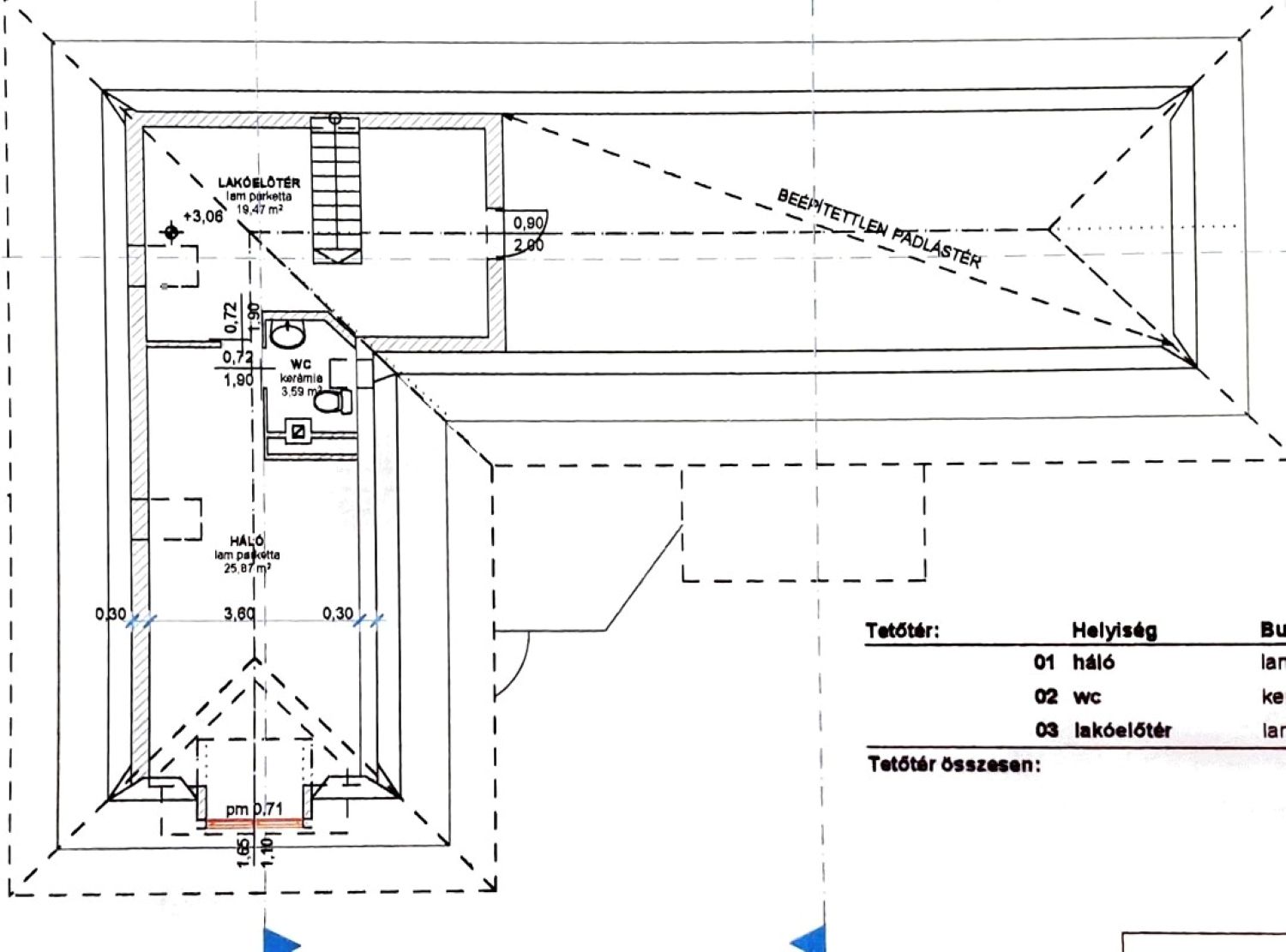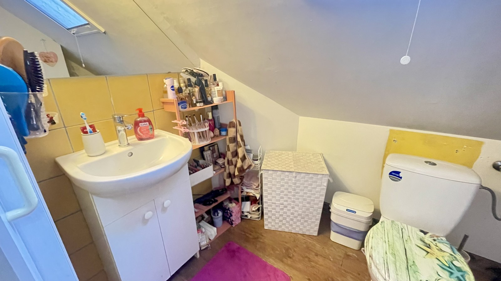 A tetőtéri előszoba + hálószoba WC + kézmosó