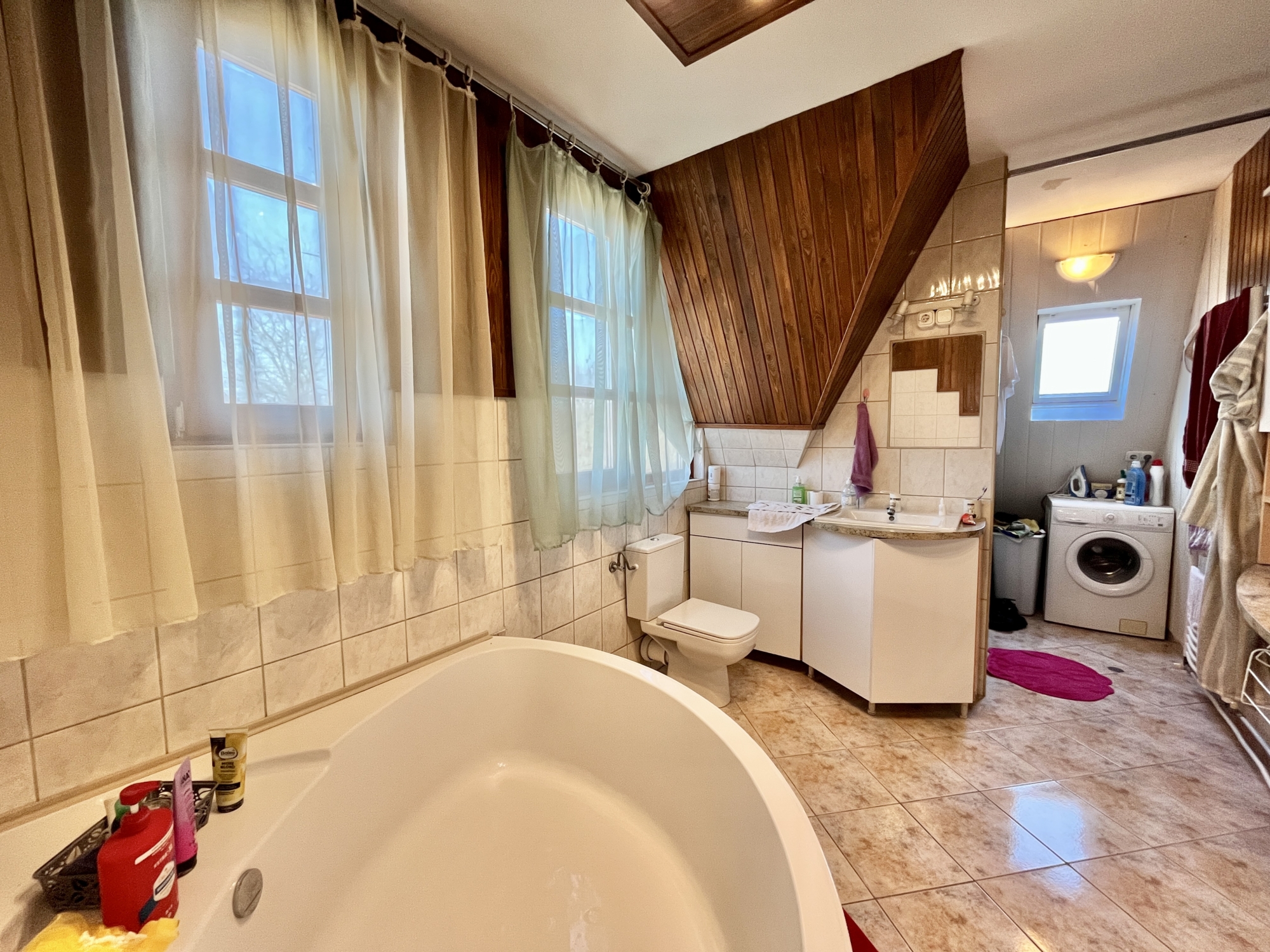 A 30 cm tégla falra 10 cm szigetelés került, a fa ablakok 3 rétegű üvegezéssel vannak ellátva, melyeken redőny található.  Járólappal és laminált parkettával van burkolva mind a két szint.