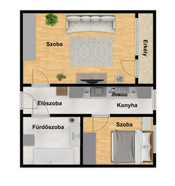 A lakás elrendezése praktikus, világos terekkel rendelkezik, így ideális választás lehet pároknak vagy egyedülállóknak is.