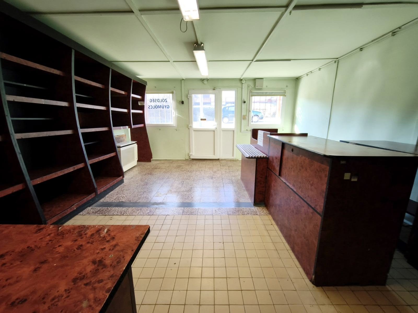 – eladótér (40 m², közlekedő, mosdó, wc, raktár (20 m² )