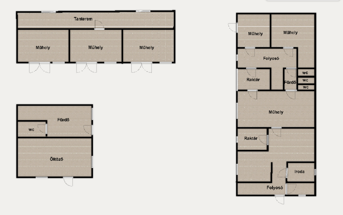 Az udvarban található egy fő üzemhelység amiben iroda, mosdó, wc, tárgyaló, a működésre használt műhelyek találhatók.