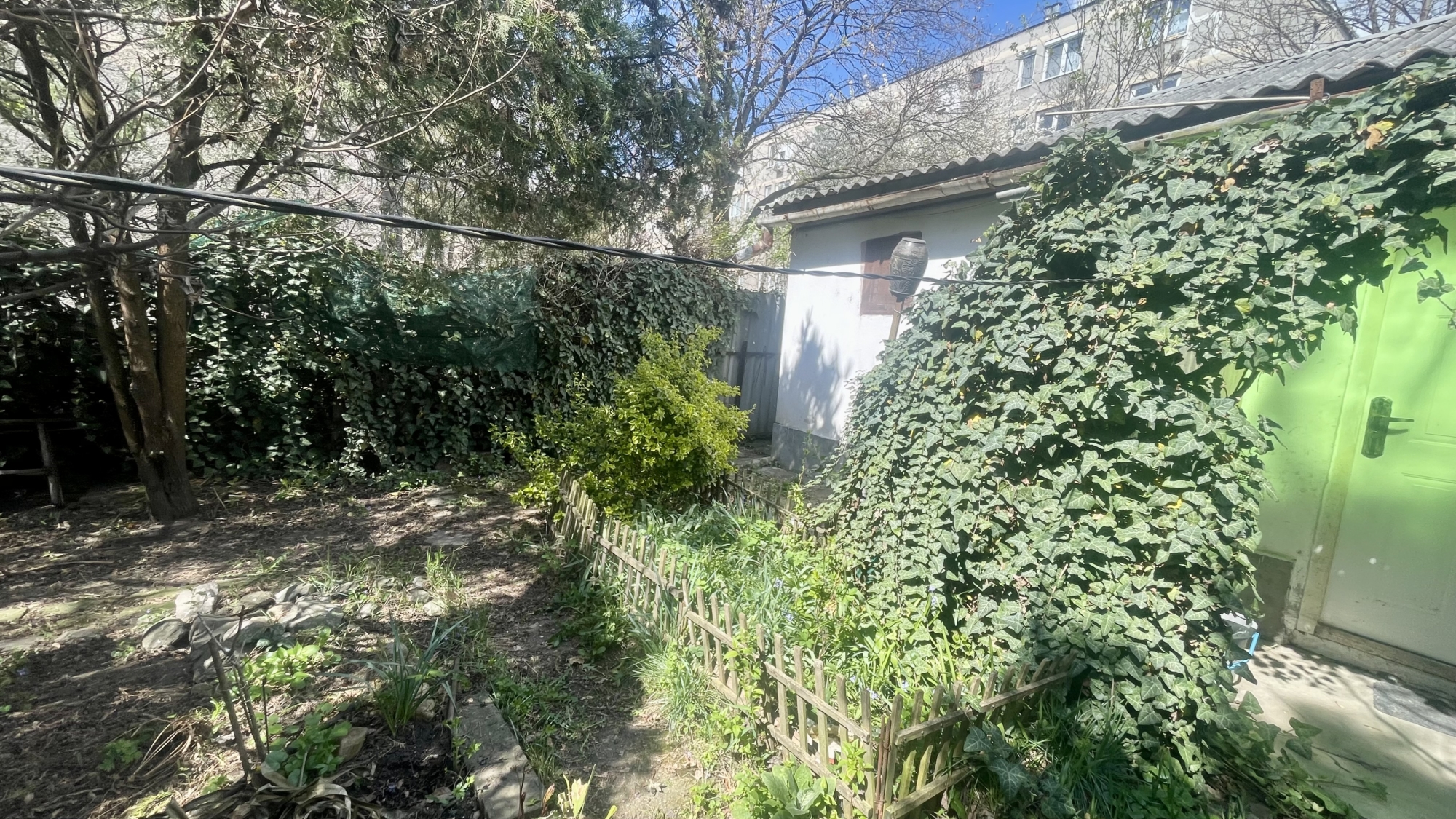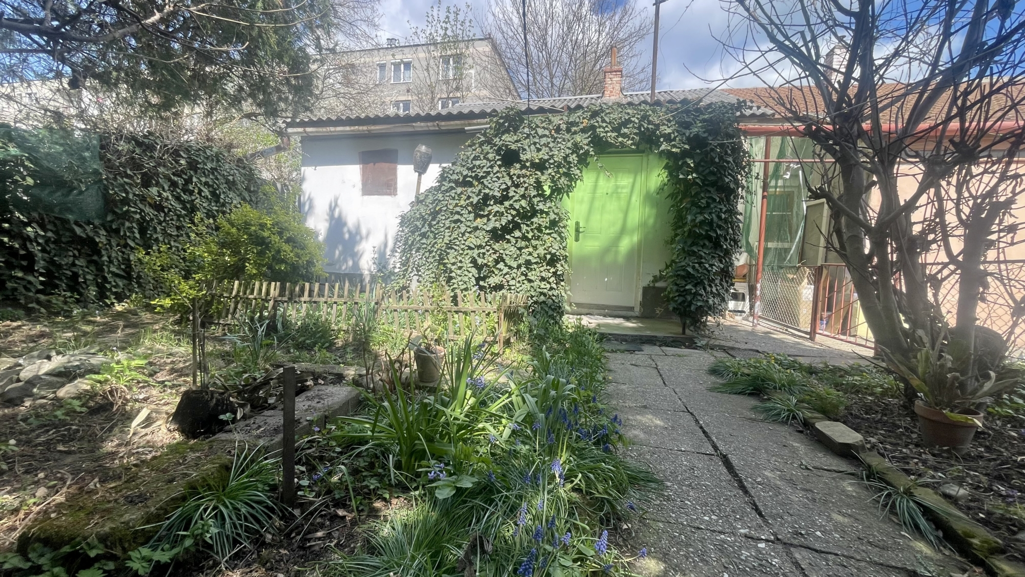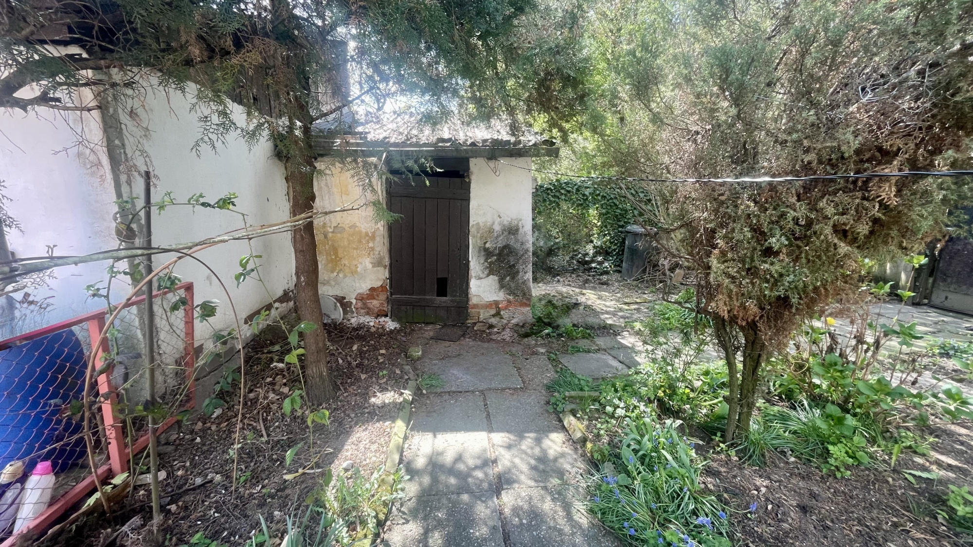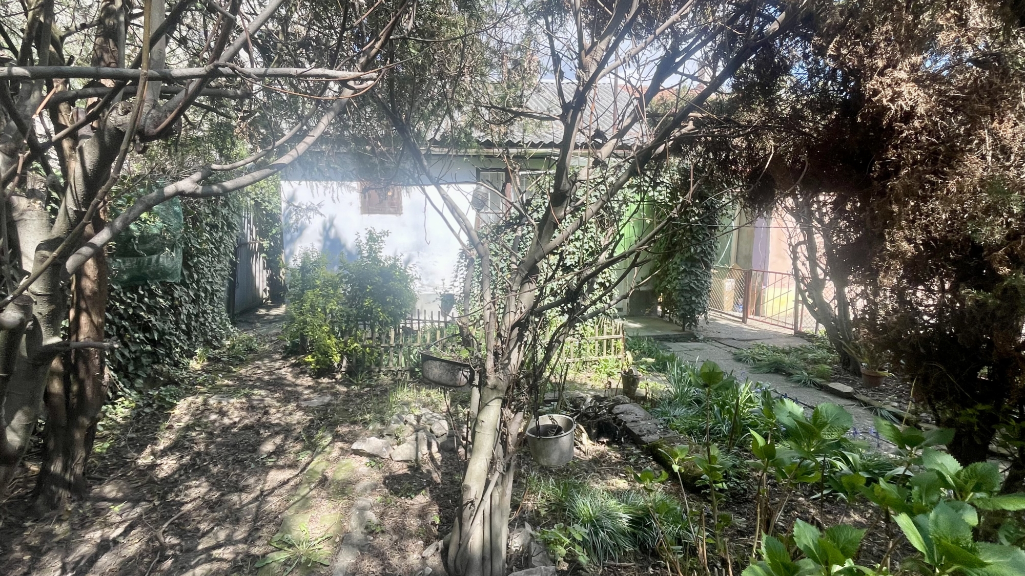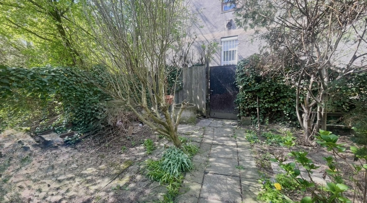 A téglaépítésű sorház egyik lakása saját, elkerített kertrésszel rendelkezik, amely ideális pihenésre vagy kertészkedésre. A telek két külön bejárattal is megközelíthető, ami praktikus és kényelmes használatot biztosít.