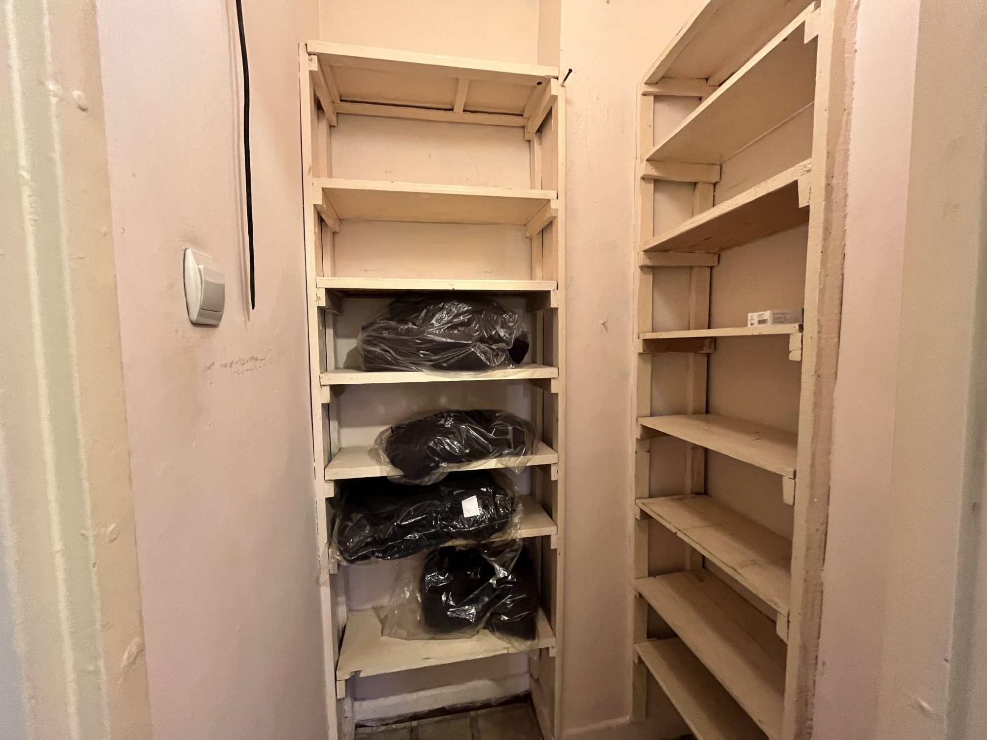 Az ingatlanhoz tartozik egy saját tároló az alagsorban, amely praktikus megoldást nyújt a ritkábban használt dolgok elhelyezésére.