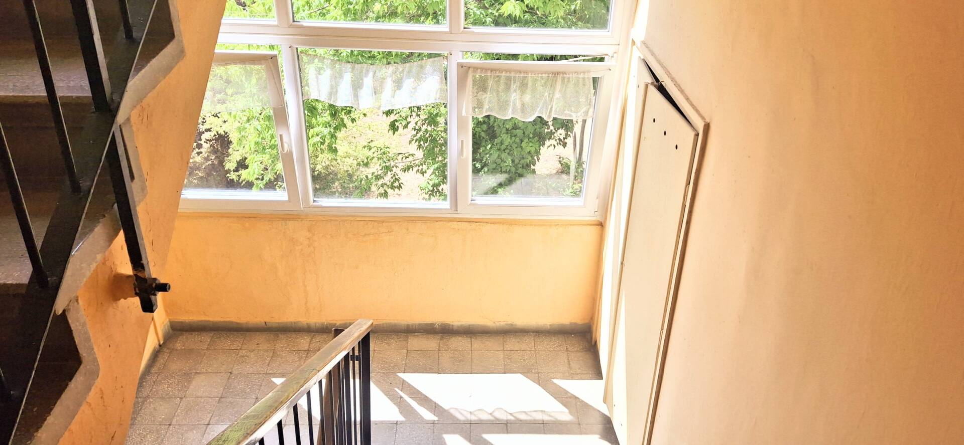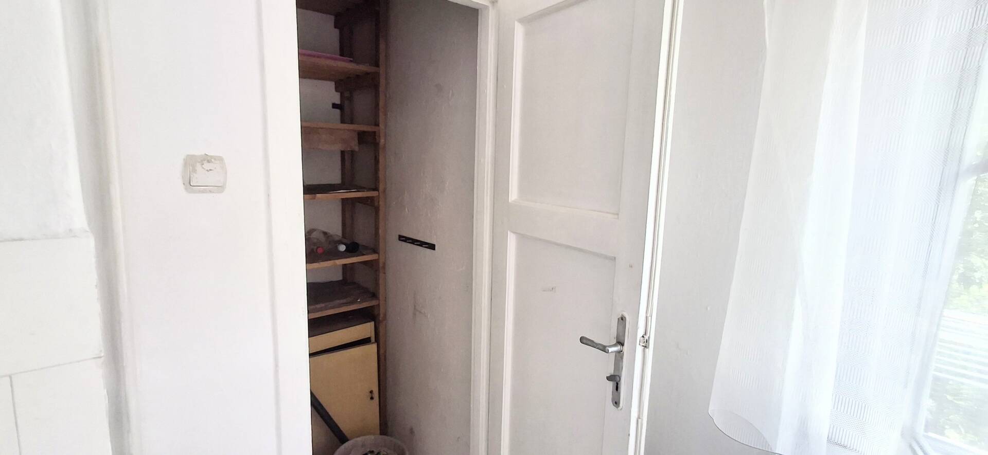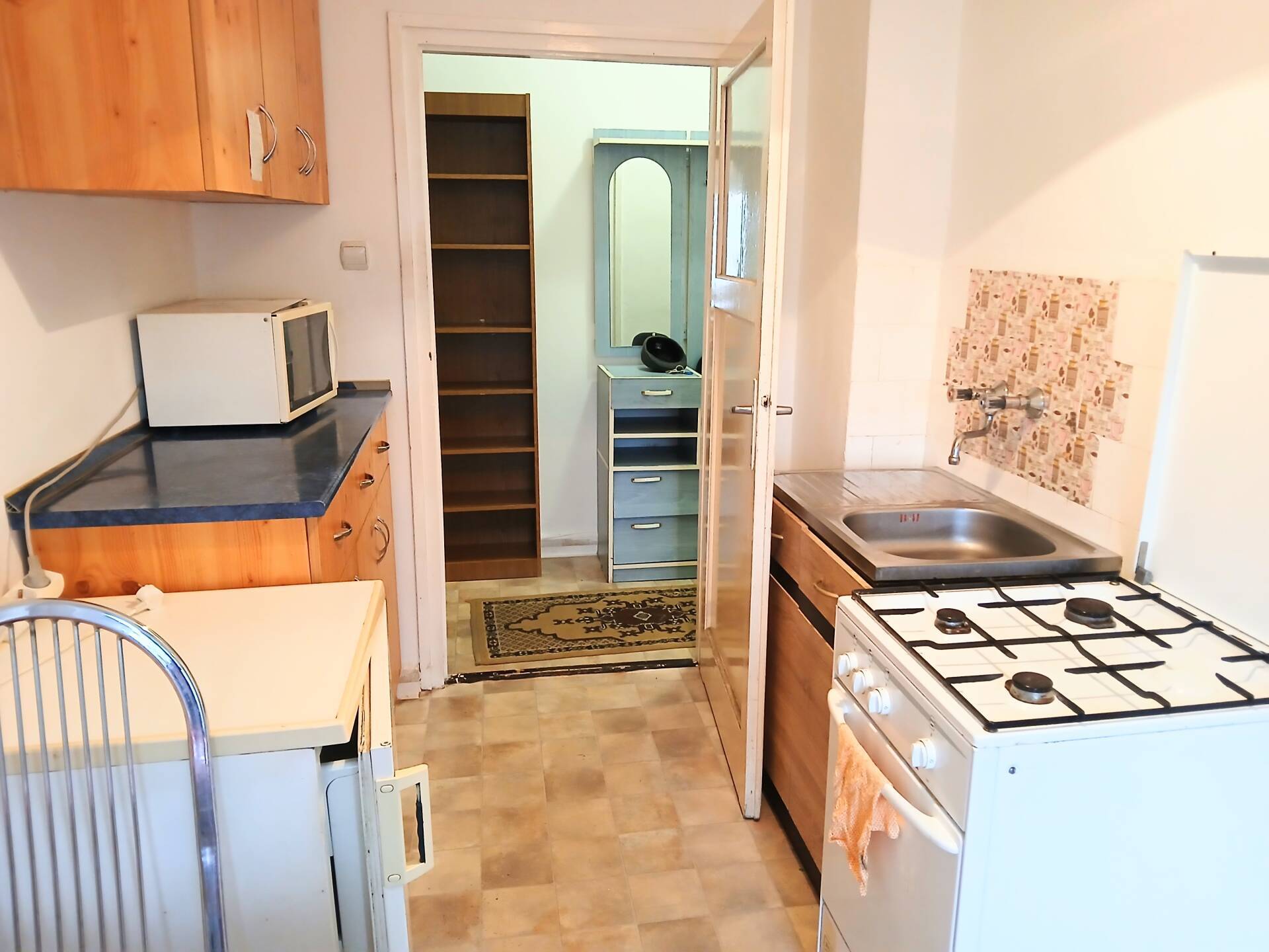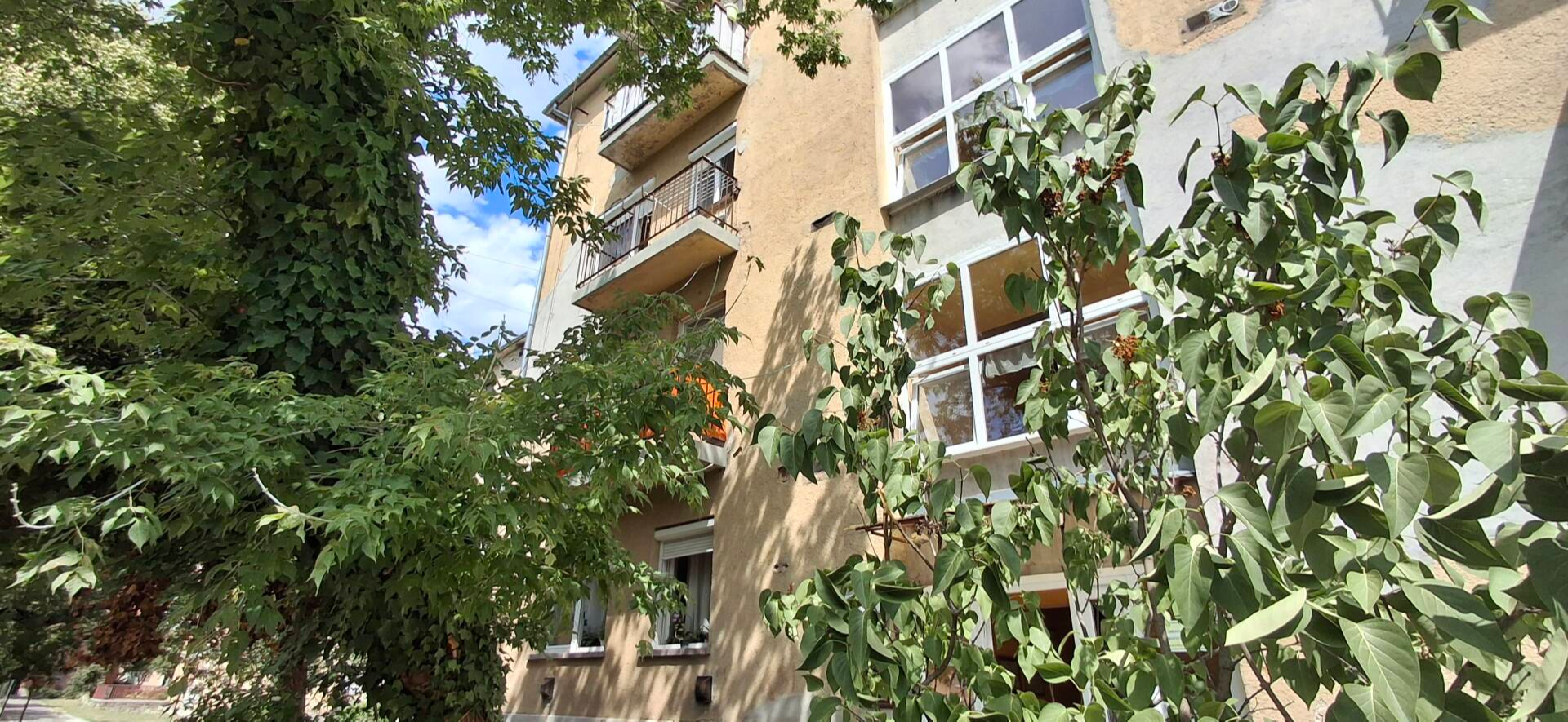 A szobából külön nyíló nagy konyhás, spájzos, nagy erkélyes, 36 m², 1 szobás garzonlakás egy négyemeletes épületben található.