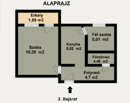 ✔️ 1,5 szoba – jól kihasználható elrendezés