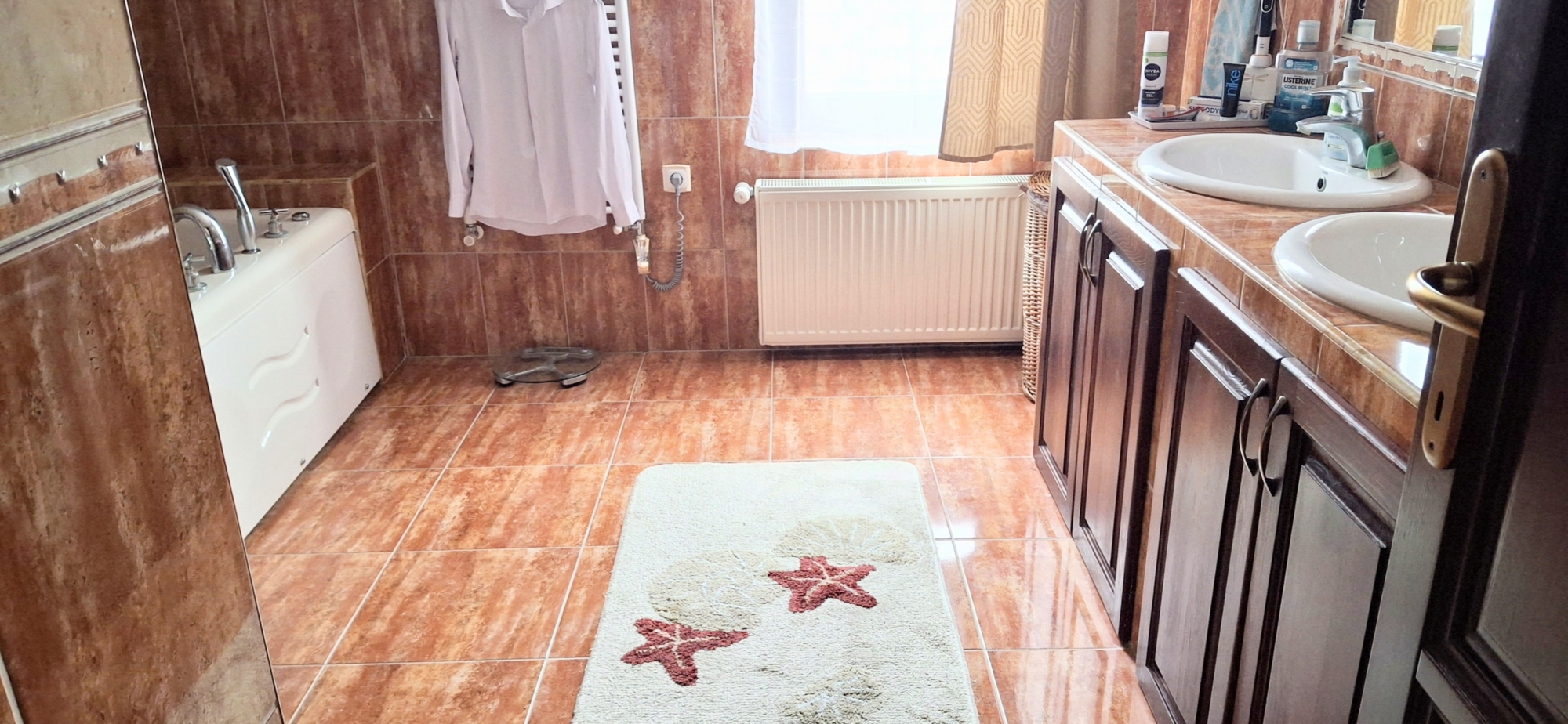 A főépület 170 m²: 4 hálószoba hatalmas nappali amerikai konyha étkező ami 2010 -ben teljes körűen felújított, újszerű állapotú gondosan karbantartott korszerű lakóház, 80 m² pincerésszel.