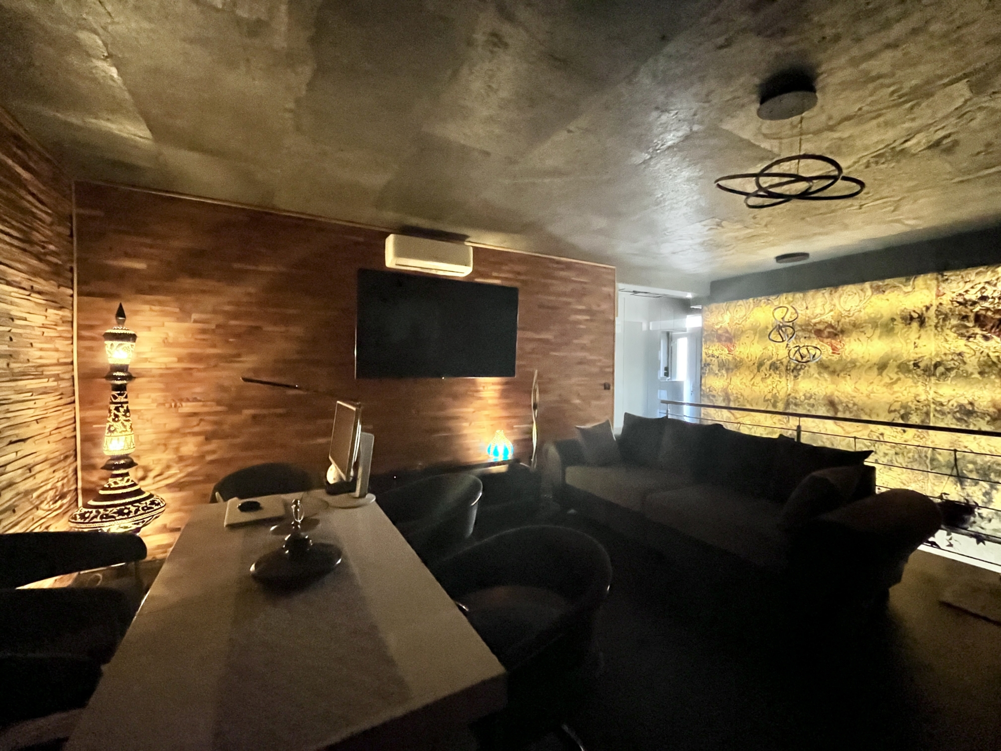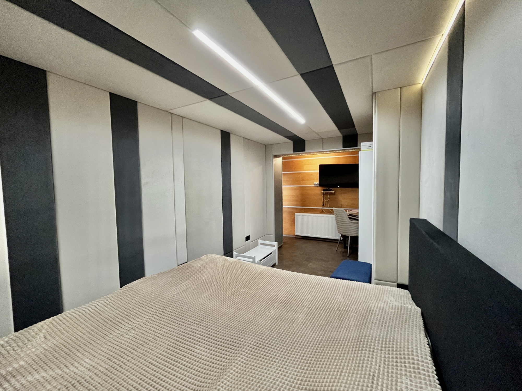 Egy nagy szoba, amely igény szerint kettéosztható.