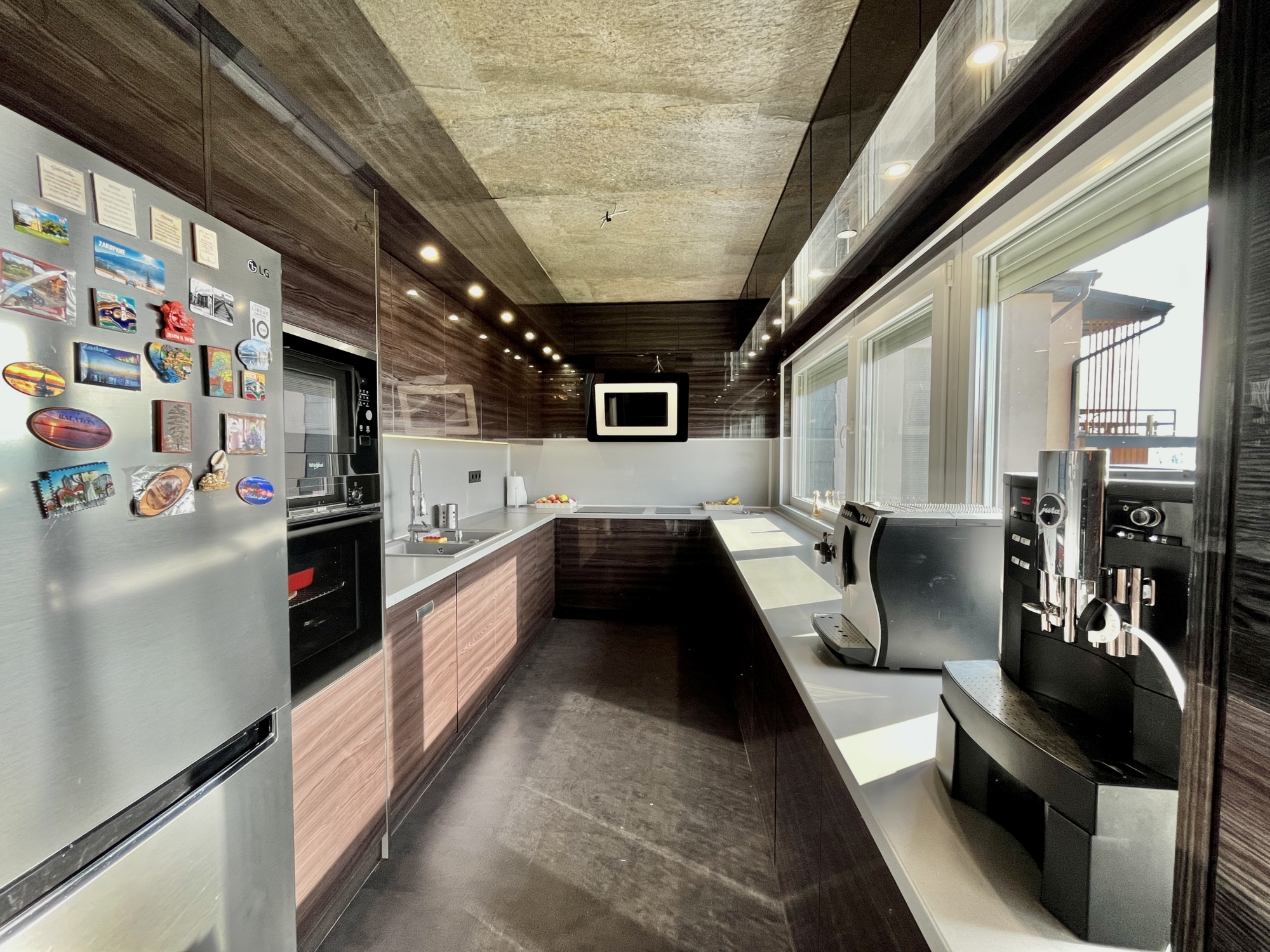 Egyedi tervezésű, teljesen gépesített konyha (6 főzőlap, sütő, mikró, prémium páraelszívó, beépített hulladéktároló)