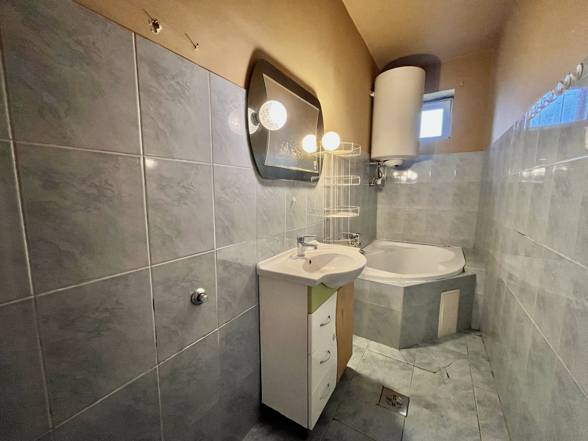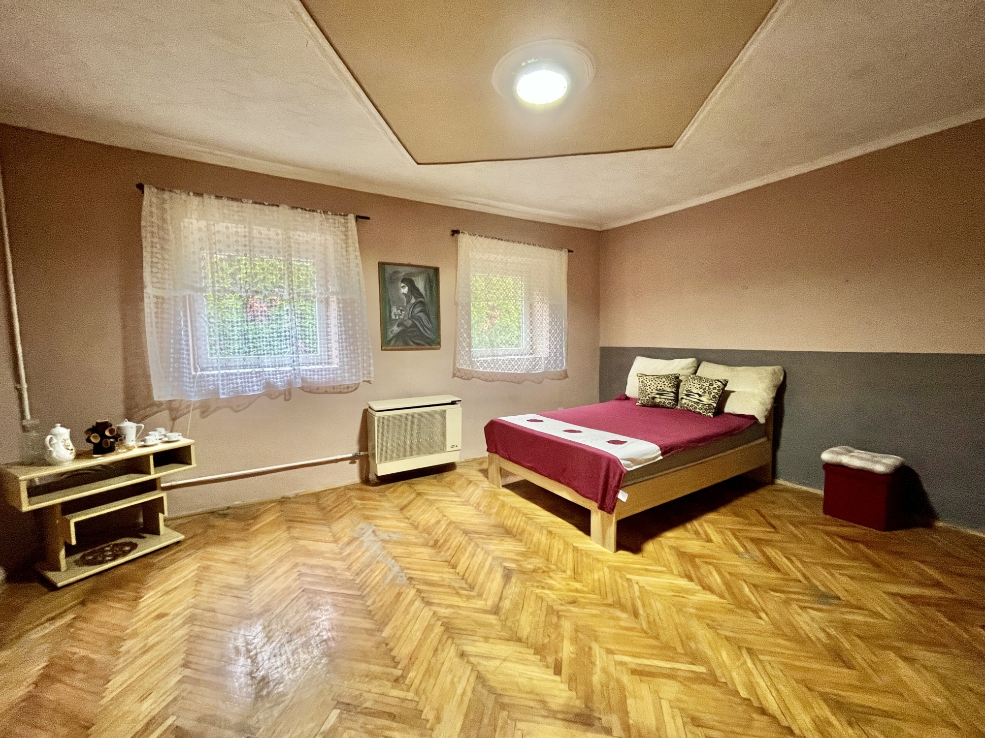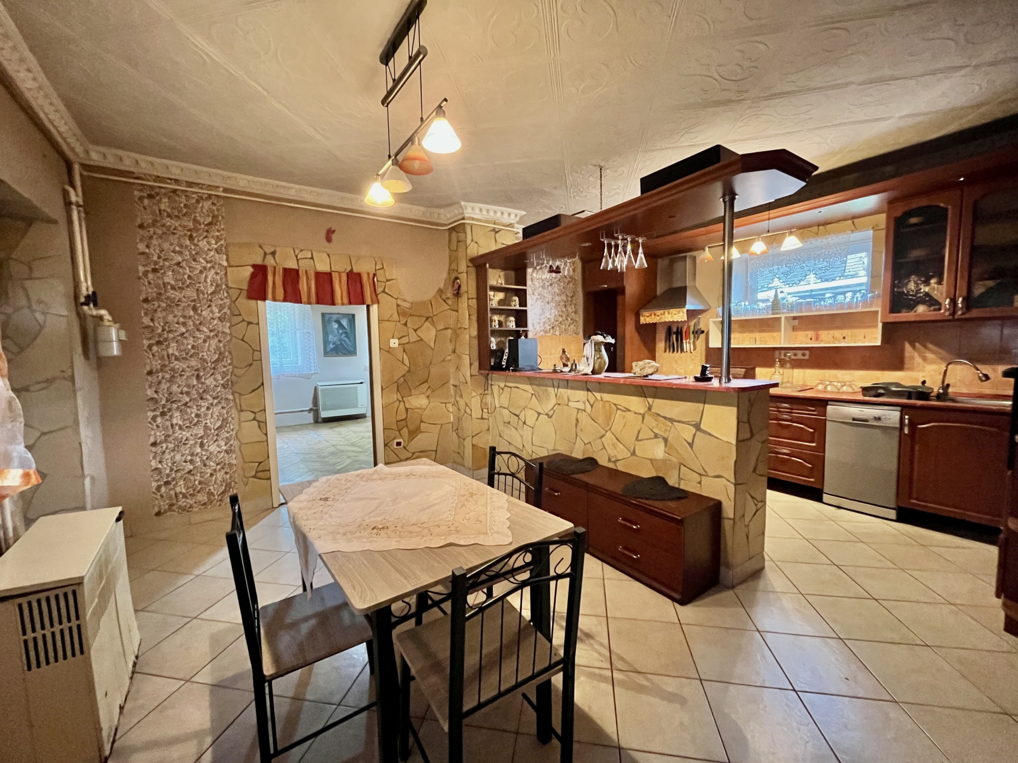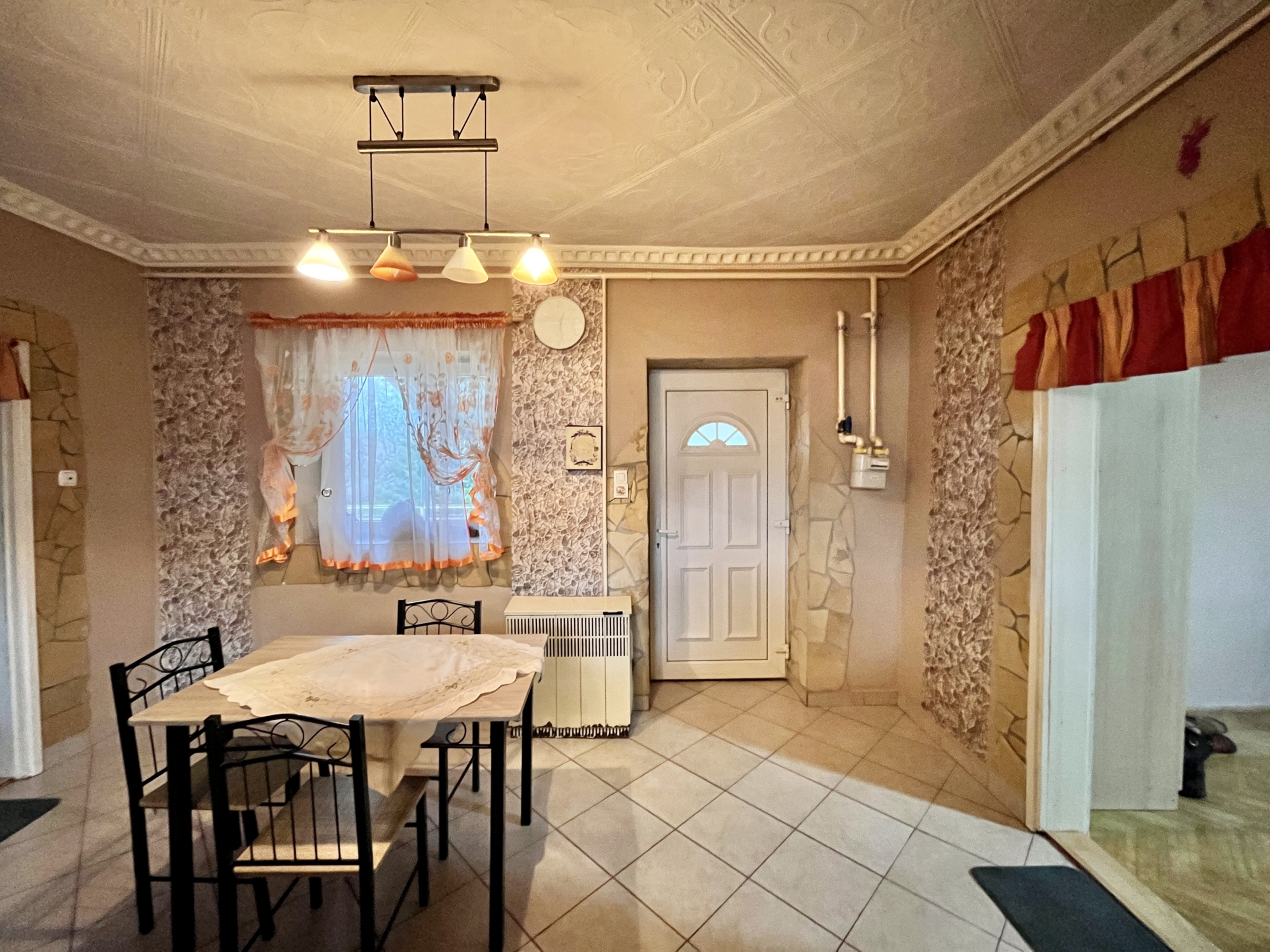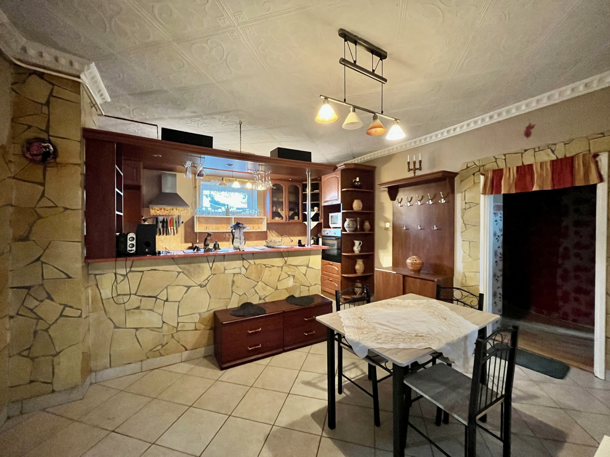 A ingatlan közművesített műanyag nyílászárokkal felszerelt. A ház egy hálószobából vendégszobából,illetve egy amerikai stílusú konyhából áll. A konyha kettéválasztott egy bárpult segítsésével, így hangulatosabb. Található benne még egy fürdő ,ami a vendégszobából közelíthető meg.