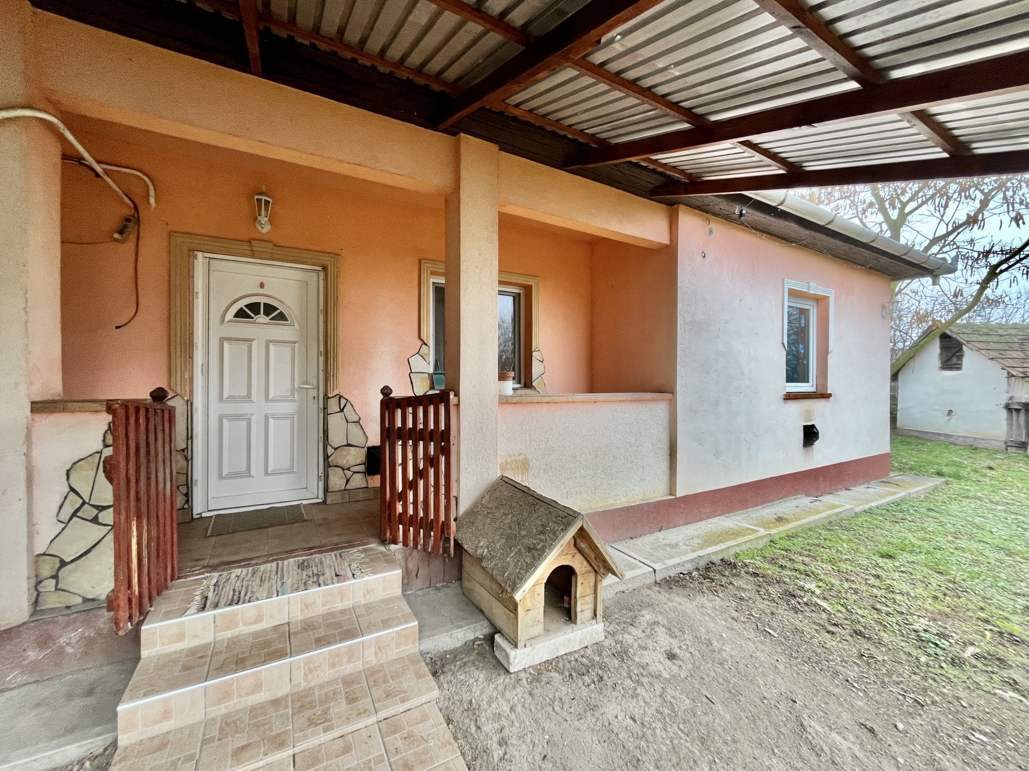 Az udvaron egy felújított melléképület van, ami műanyag nyílászárókkal ellátott.Rendezett parkosított udvar botanikus kert kilakítással. Az udvar két részből áll, amit kerítés választ el egymástól. Az első udvar gyümölcsfákkal és növényekkel beültetett. A hátsó részen található egy mobilgarázs és a melléképületek.A telek két útról megközelíthető. Internet hálózat kialakított a településen.